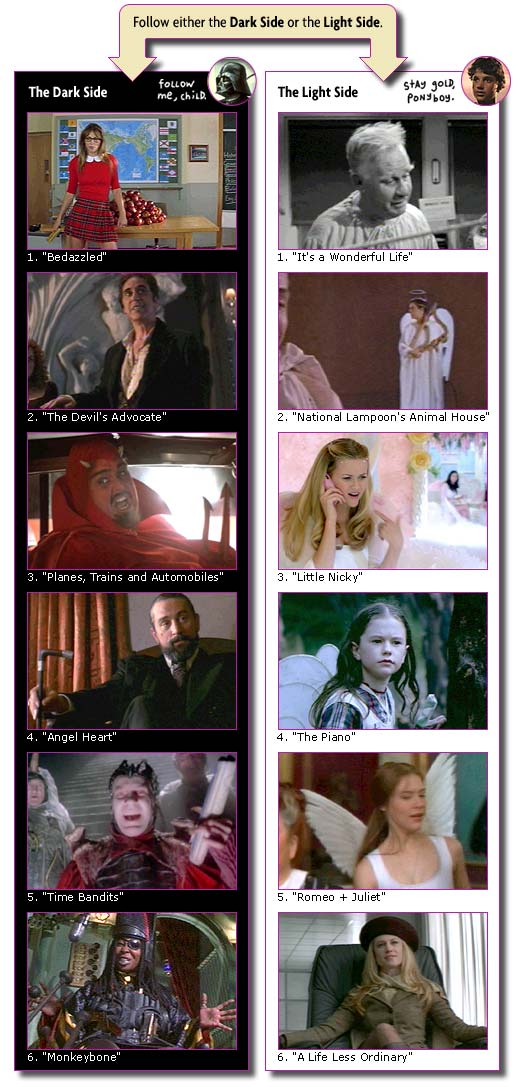 Section 3: Good and Evil For this section, you must choose to follow either the Dark Side or the Light Side. All six answer boxes appear at the bottom of the section. |